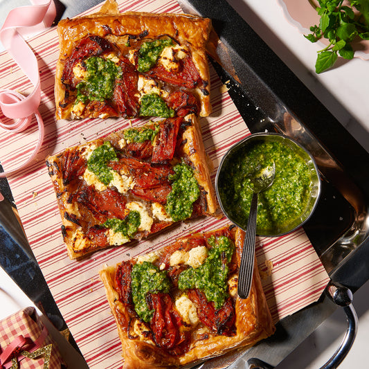 Bake-at-home parmesan biscuit with red capsicum tapenade and mascarpone